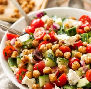Preheat the oven to 425°F and line a large baking sheet with parchment paper. Spread the chickpeas on a kitchen towel and pat them dry. Remove any loose skins. Transfer the dried chickpeas to the baking sheet and toss them with a drizzle of olive oil and generous pinches of salt.